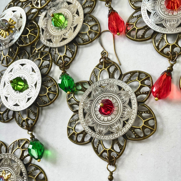 Named by my friend Damon (his name might be nomad backwards), the nomad collection is a bright, colorful and unique collection that reminds me of the colors worn by the nomadic people of Northern Africa and the Middle East. The broad collection of colorways and unique design allow for these earrings to accompany every outfit from blue jeans to evening gowns.